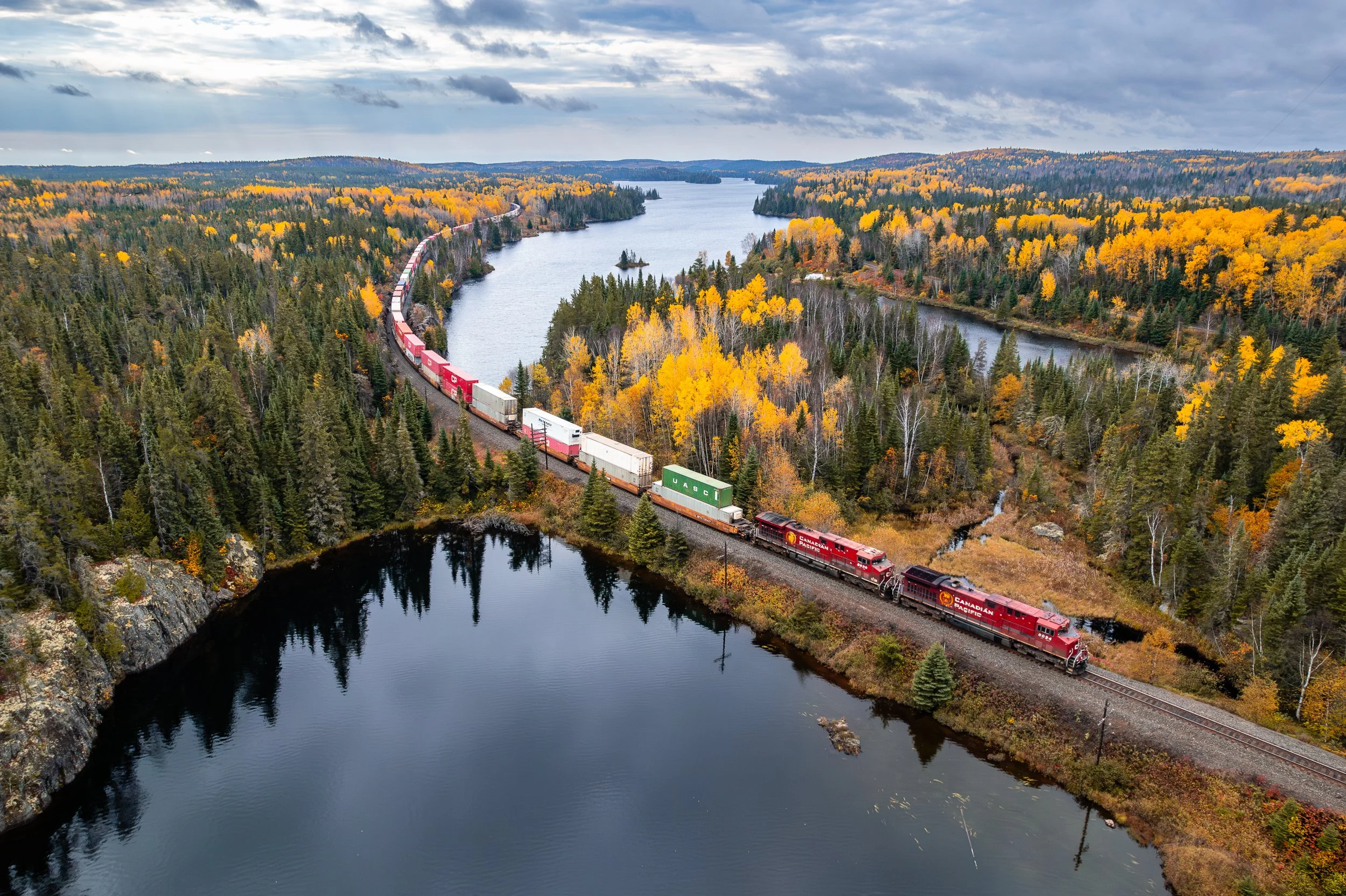 Toronto to Vancouver hotshot no. 101 races through the pristine wilderness of Northern Ontario on Canadian Pacific’s transcontinental mainline at Franz, Ont., on the afternoon of October 5th, 2022.